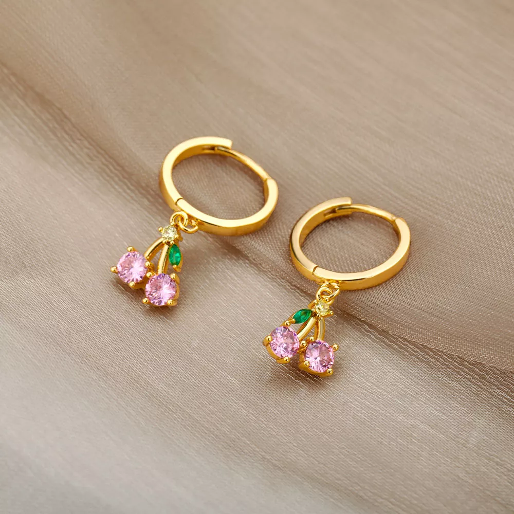 Crystal Pink Cherry Drop Earrings for Women
