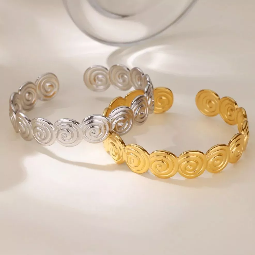 Gold Threaded Geometric Cuff Bangle for Women – Trendy Stainless Steel Bracelet