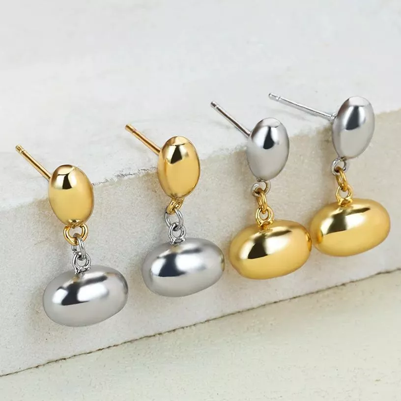 Elegant Double-Spliced Oval Stainless Steel Drop Earrings
