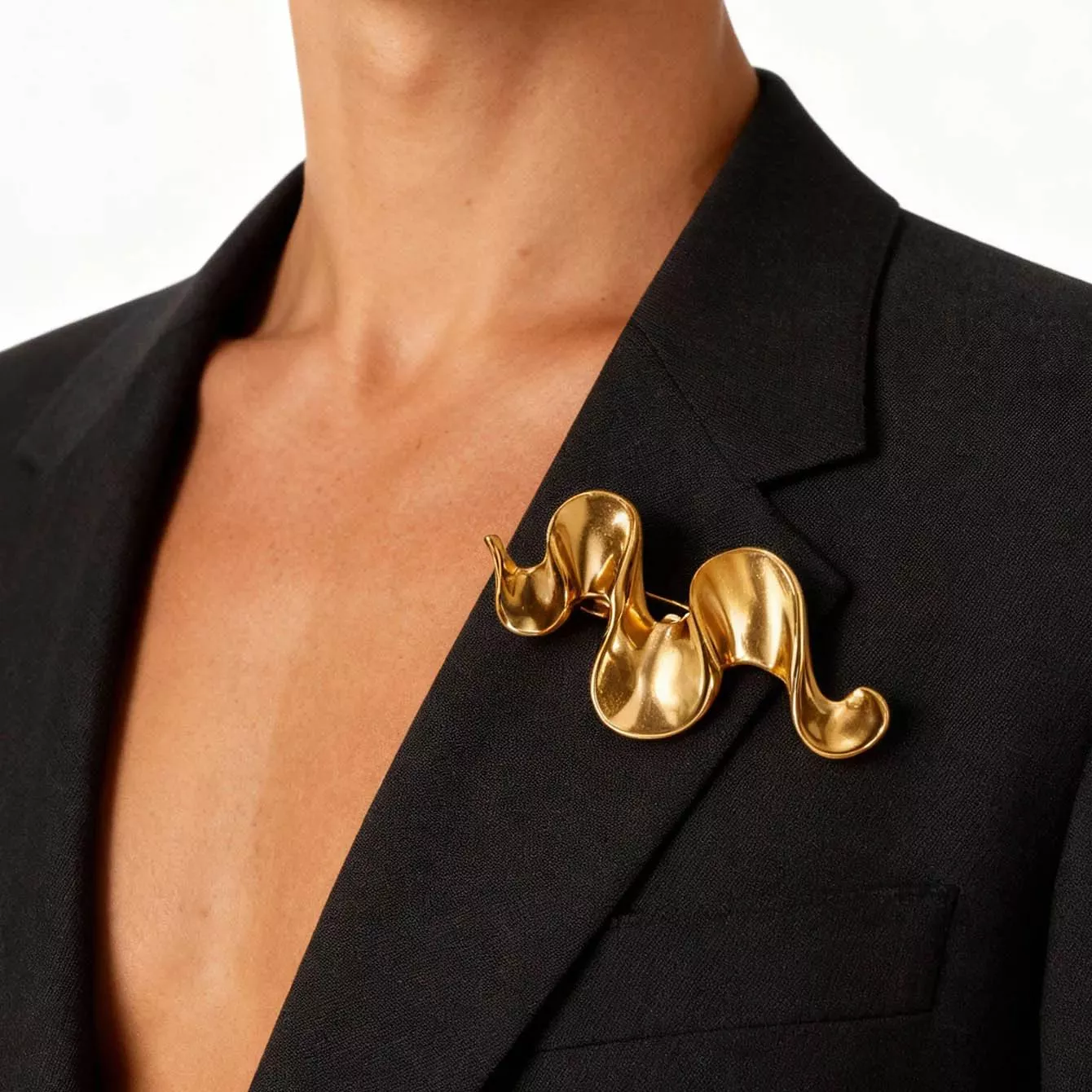 Vintage Irregular S-Shaped Stainless Steel Brooch Pin for Women & Men – Geometric Jewelry Accessory