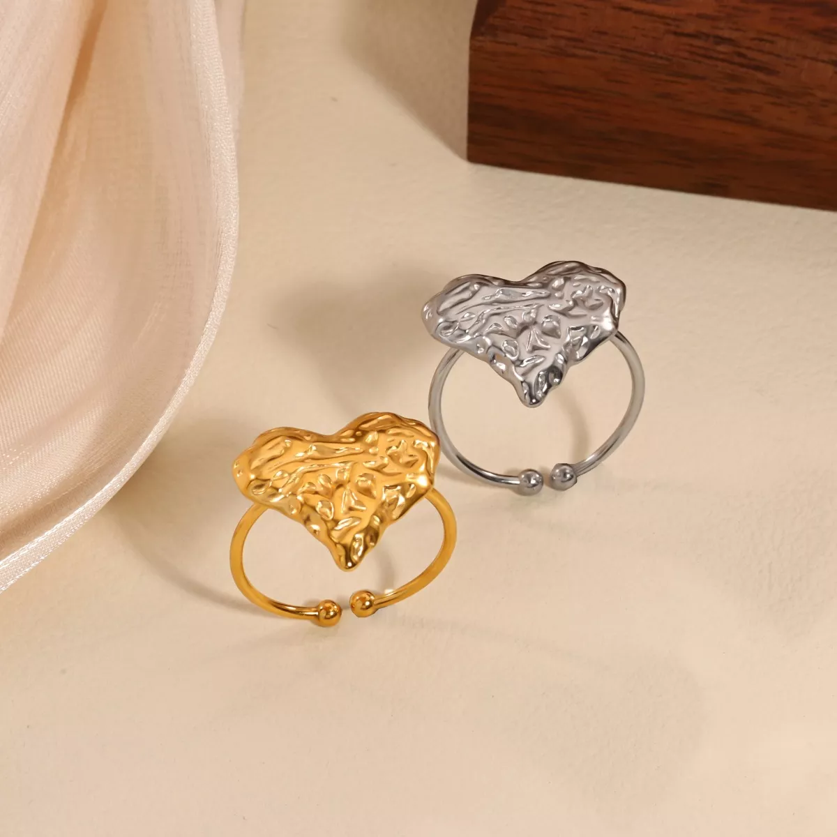 Adjustable Heart Ring for Women – Gold Stainless Steel Fashion Jewelry