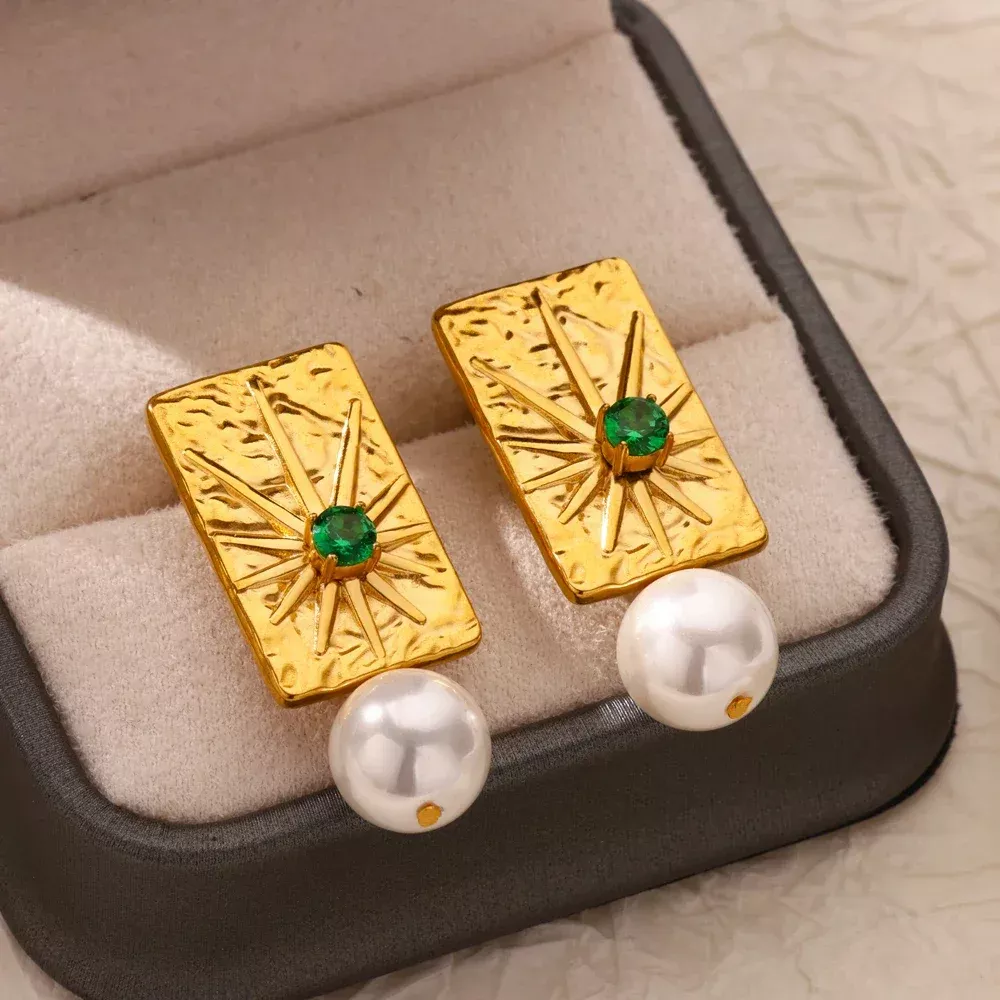 Zircon Imitation Pearl Star Stud Earrings for Women – Stainless Steel Geometric Jewelry