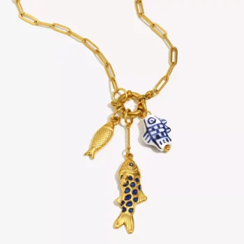Golden Plated Stainless Steel Fish Charm Necklace – Unisex Jewelry