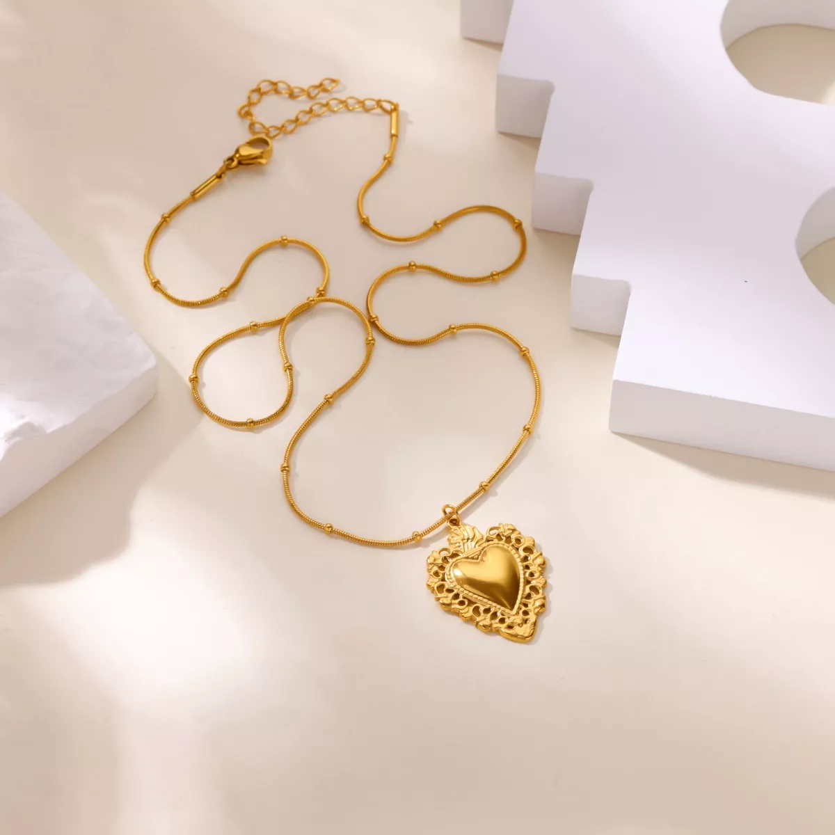 Gold Stainless Steel Bohemian Heart Pendant Necklace for Women