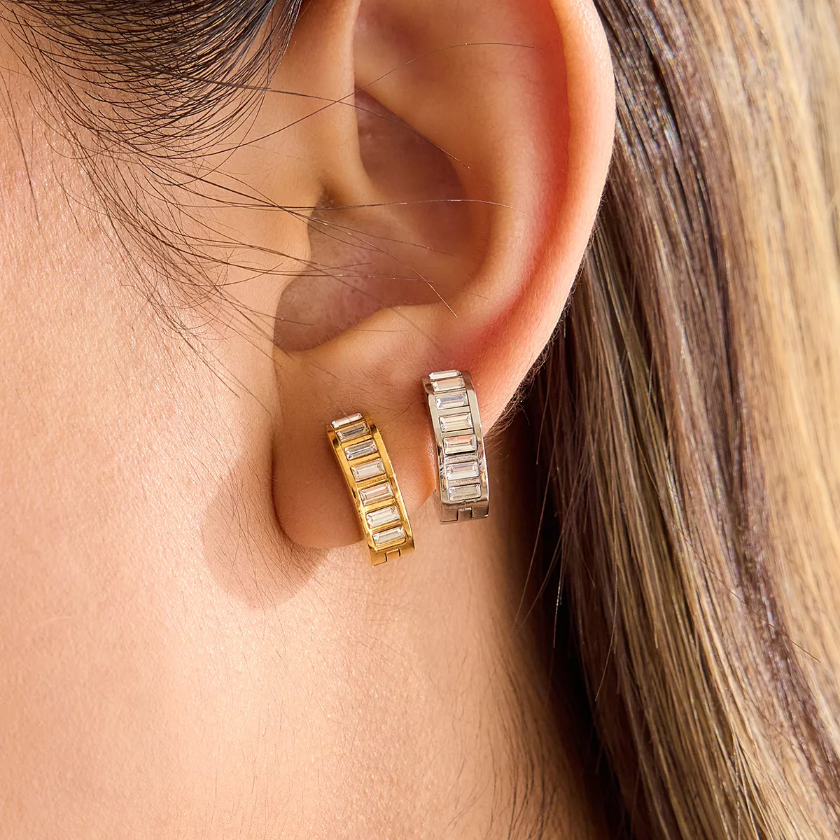 Threaded Twisted C-Shaped Gold-Plated Drop Earrings – Stainless Steel & Zircon