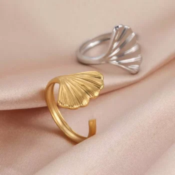 Vintage Ginkgo Leaf Adjustable Stainless Steel Ring