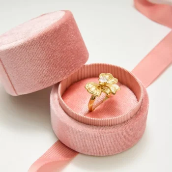 Romantic 18K Gold Color Heart Zircon Bowknot Open Ring for Women