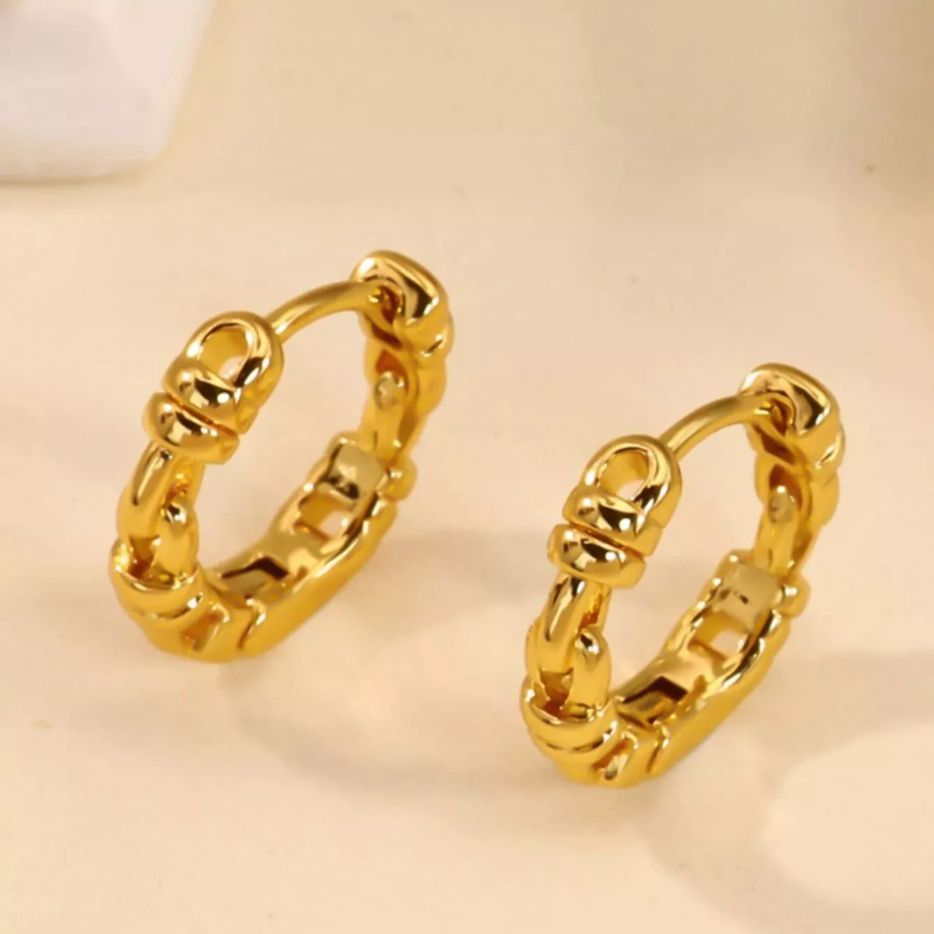 Gold Stainless Steel Geometric Chain Hoop Earrings | Waterproof Statement Studs
