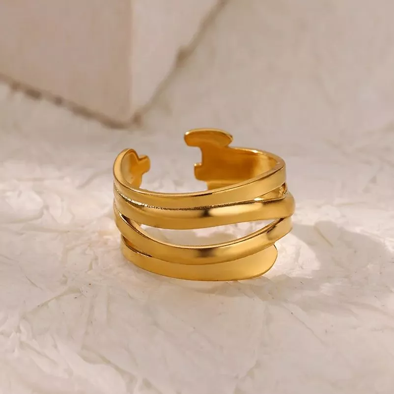 Irregular Double Layer Stainless Steel Open Ring for Women – Gold Color Wedding & Aesthetic Jewelry