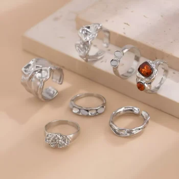 Vintage Gothic Rhinestone Open Rings Set – 7Pcs Punk Bridal Jewelry