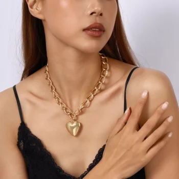 Punk Heart Pendant Link Chain Choker Necklace