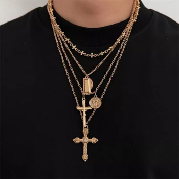 4Pcs Jesus Cross Pendant Necklace Set – Trendy Virgin Mary Layer Necklace