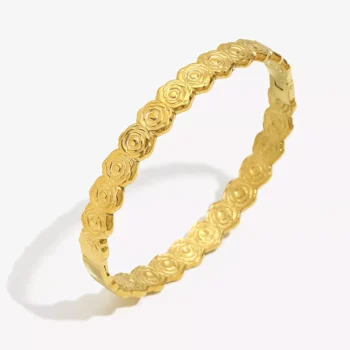 18K Gold Plated Oval Flower Bangle – Stylish Women’s Jewelry
