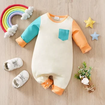 Unisex Cotton Patchwork Baby Jumpsuit – Soft Long Sleeve Romper for Fall