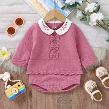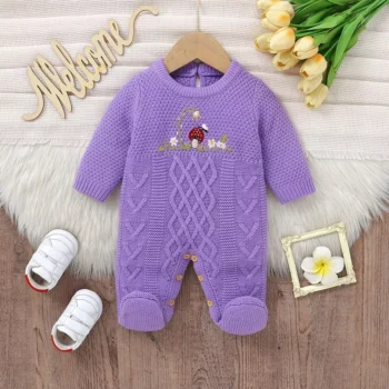 Autumn Baby Knit Romper with Mushroom Embroidery