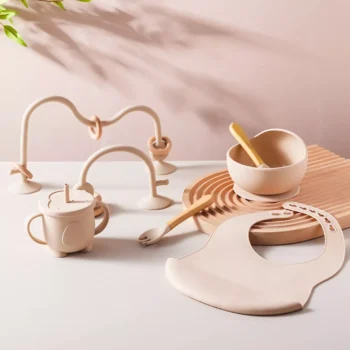 4-Piece Baby Soft Silicone Feeding Set – Non-Slip Bowl, Plate, Bib, Spoon