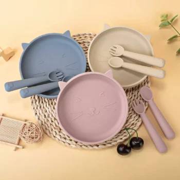 3pcs Silicone Baby Feeding Set – Plate, Spoon & Fork for Toddlers