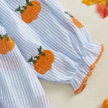 Baby Halloween Pumpkin Romper Striped Long Sleeve Jumpsuit 0-24M