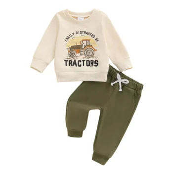 Autumn Toddler Boy Truck Print Long Sleeve Top and Pants Set