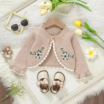 Baby Girl Knit Cardigan with 3D Flower Design – Button Down Fall Sweater
