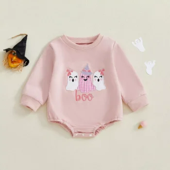 Baby Girl Halloween Ghost Embroidery Romper Long Sleeve Jumpsuit