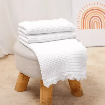 Soft Cotton Knit Baby Blanket with Ruffle Design – 35×28 Inch Swaddle Wrap