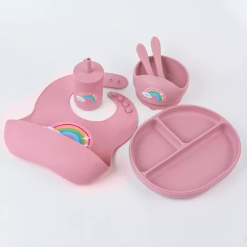 6-Piece Silicone Baby Feeding Set – Suction Bowl, Snack Cup, Spoon & Fork