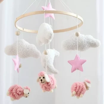 Baby Wooden Bedbell Bracket – Natural Wooden Mobile with Crochet Rattle Toys