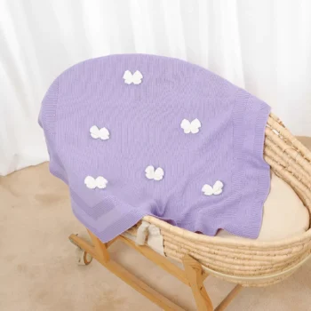 Super Soft Knit Baby Blanket with 3D Bows – Swaddle & Stroller Wrap 35x28in