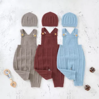 Baby Romper Set for Boys & Girls – 2PCS Knitted Playsuit with Hat (0-18M)