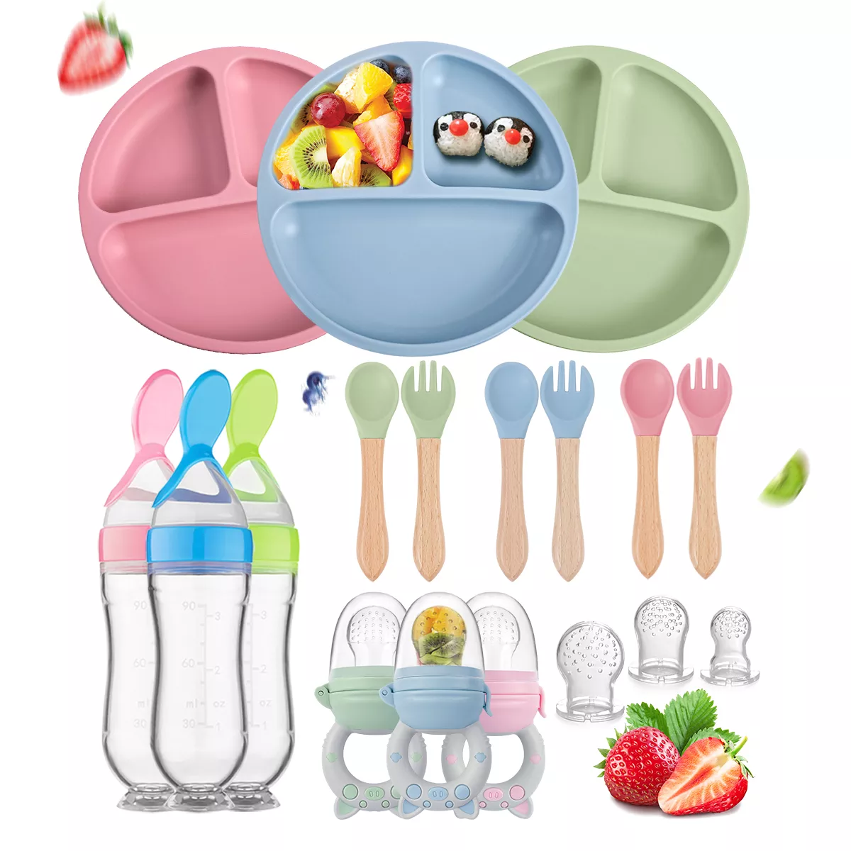 3pcs Silicone Baby Feeding Set – Plate, Spoon & Fork for Toddlers