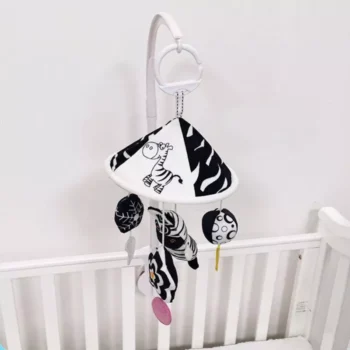 High Contrast Hanging Stroller Toy with Rattles & Teether for 0-24M