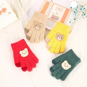 Adorable Cartoon Bear Knit Gloves for Toddlers – Warm and Cozy Acrylic Mittens