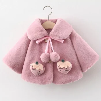 Charming Strawberry Plush Winter Jacket for Baby Girls