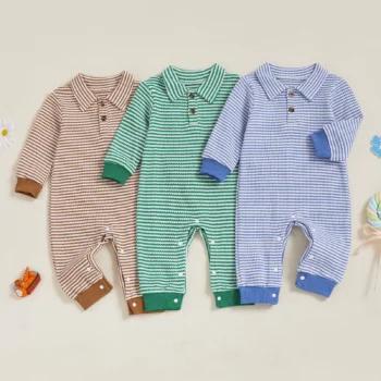 Baby Boy Long Sleeve Striped Romper with Collar