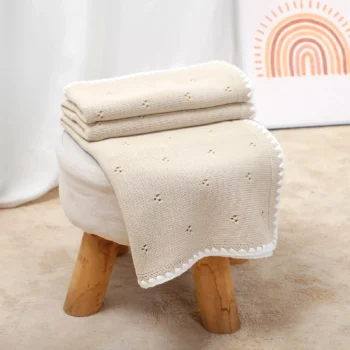Super Soft Cotton Baby Blanket 40x32in – Knitted Swaddle & Stroller Wrap