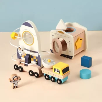 Wooden Astronaut Space Toys Montessori Rocket Puzzle Set