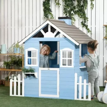 Country Style Wooden Playhouse for Kids, Outdoor Fun with Planter Pots