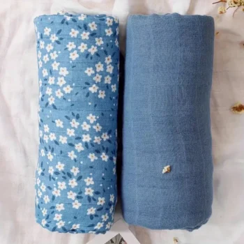 2 Pack Muslin Swaddle Blankets with Print and Solid Color – 100% Cotton