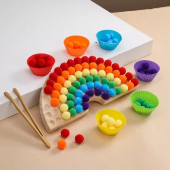 Montessori Rainbow Pom Pom Sorting Game with Tweezers – Fine Motor Learning Toy