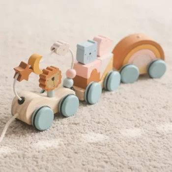 Wooden Montessori Animal Train Stacking Toy with Blocks & Pull-Along Design