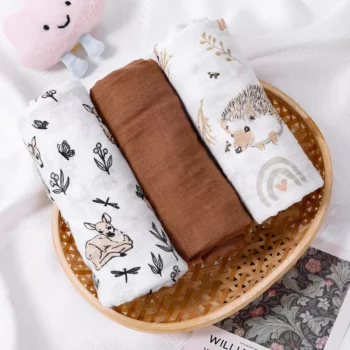 3PCS Cotton Muslin Swaddle Blankets – Baby Sleeping Quilt & Stroller Cover