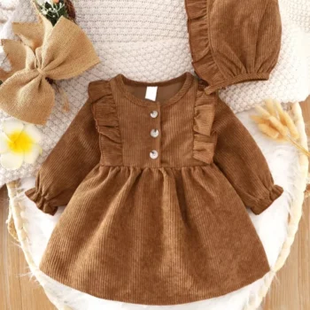 Baby Girl Autumn Knit Dress – Retro Elegant Comfort (Coffee Brown)