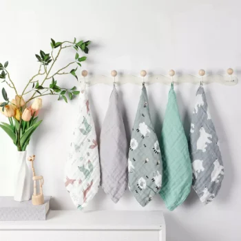 Soft Baby Muslin Washcloths 5 Pack – Bamboo Cotton Face & Bath Towels
