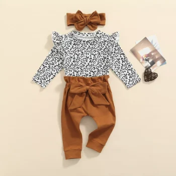Baby Girl Leopard Romper Outfit Set with Pants and Headband (0-12M)