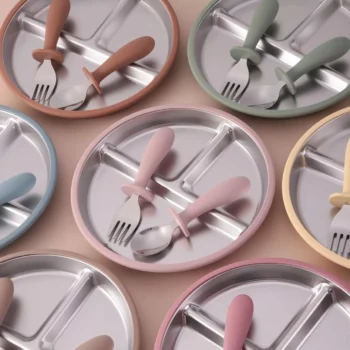 3PCS Baby Feeding Set Stainless Steel Bowls with Suction & Training Utensils