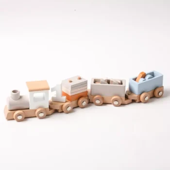 Wooden Montessori Train Toy with Numbers and Stacking Blocks