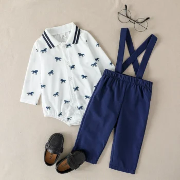 Infant Boys Horse Print Formal Overall Set – Autumn Outfit