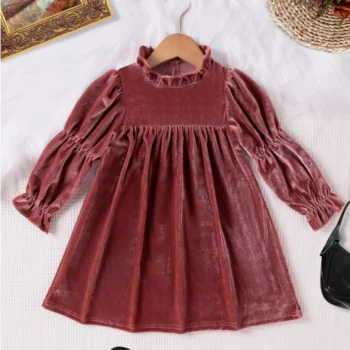 Girls’ Long Sleeve Velvet Ruffle Dress 1-5Y
