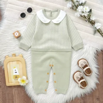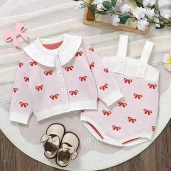 Girls Baby Knitted Sweater and Bodysuit Set – Fashion Bow Cardigan + Romper 2pcs
